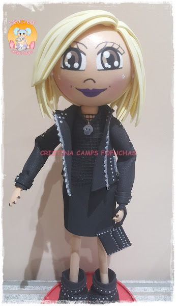Para terminar el martes os dejo una fofucha roquera, ¿que os parece?. Esta realizada tal como me han pedido, intentando ser lo más fiel posible a la original. Buenas noches y descansad mucho.