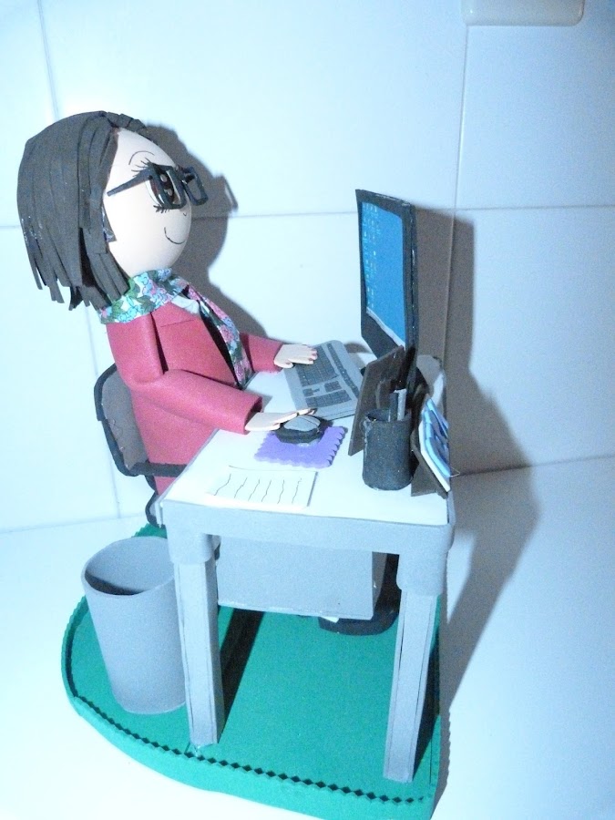 Os presento a Pepa, nuestra fofucha secretaria, ya veis que tiene su ordendor con teclado incluido, sus hojas de notas, la foto de su familia es decir todo lo que necesita una secretaria. Ya sabeis si os gusta podeis dejar vuestros comentarios