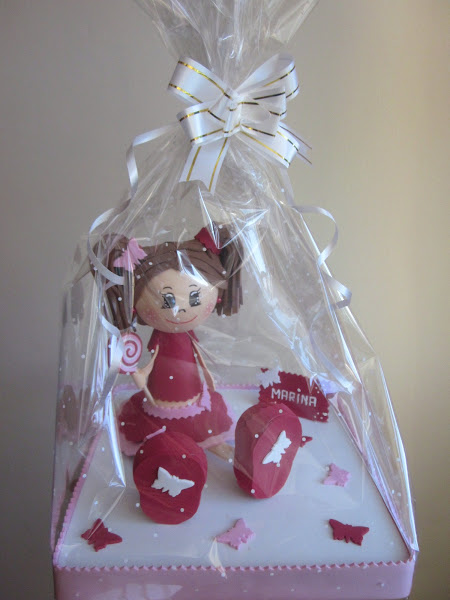 EN ESTA OCASIÓN, ES LA FOFUCHA PARA UNA COMPAÑERA DEL COLE QUE TAMBIÉN HIZO LA COMUNIÓN. DETALLE DEL PRENDIDO Y LA LAZADA CUALQUIER PERFIL ES BUENO