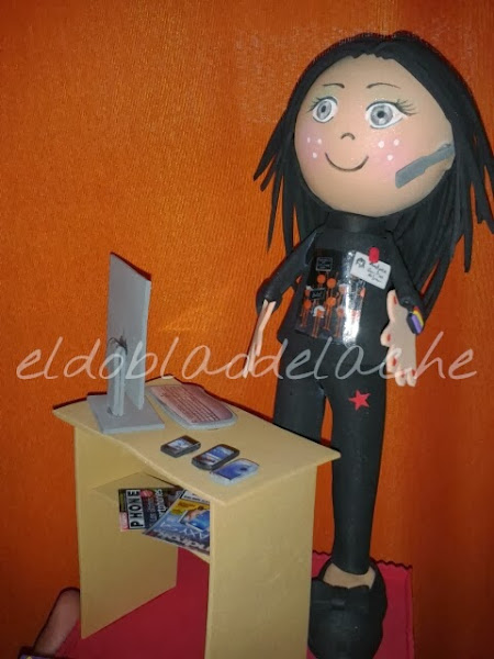 En tela color celeste con adornos en color negro y rojo. Una bonita combinación que se va para Tenerife.
