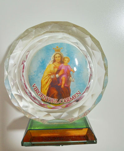 Y allá que voy muy bien acompañada con la virgen y el niño,mostrando cómo con un par de láminas baratitas puedes llegar a hacer trabajos como este.