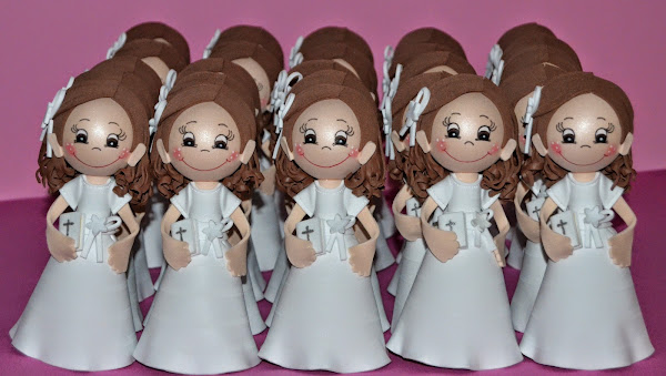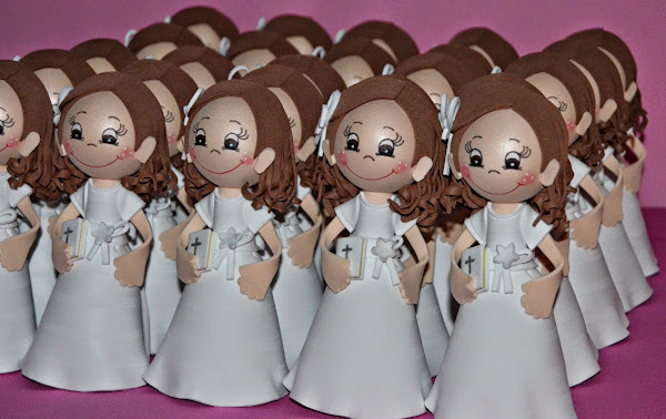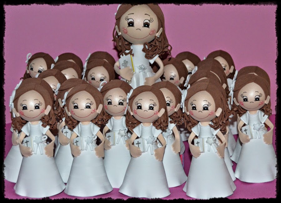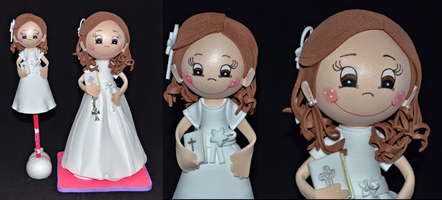 Aquí os traemos a nuestra ultima fofu de comunión de esta temporada y va acompañada de sus fofulapices personalizados, hechos también con su vestido y peinado!! Su madre , ademas de la fofu en grande, ha querido sorprender a los invitados con unos detalles bonitos y distintos!!