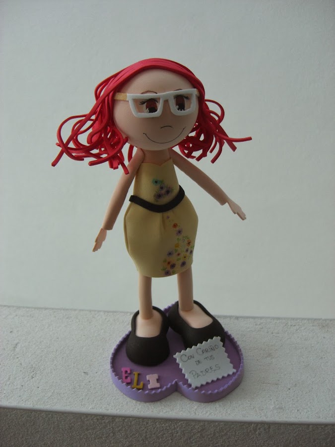 Me pidieron una fofucha no muy grande, que fuera sencillita pero que la chica se viera muy arreglada porque es muy presumida, con los datos que me aportaron este es el resultado. Medidas: 20cm