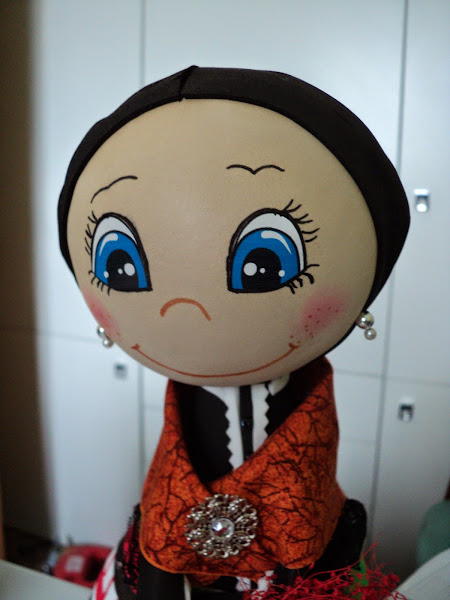 Fue un trabajo laborioso sobre todo el pelo del muñeco que además de cubrir la parte de la cabeza con una primera capa, simule los rizos con pequeñas tiras de goma eva rizada y pegadas una a una.