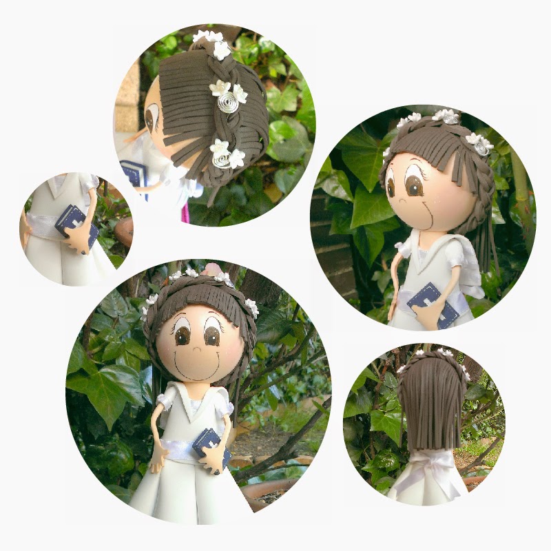 Y para terminar, El Gran Pedido!!! Este viene con nombre propio. Mi ejército de muñequitas para la Comunión de Laura. 27 fofuchas pequeñas. Trabajo a contrarreloj y con algún percance que otro, pero salieron. Eso sí, sin tiempo para sesión de fotos. Así que esta es la única muestra que ha quedado.