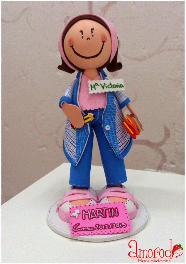 Siguiendo con las fofuchas para fin de curso, éstas son para dos profesoras de una misma guardería, están así sin base porque las pegarán en un corcho junto con fotos de sus alumnos, un bonito detalle que seguro que las encantará.