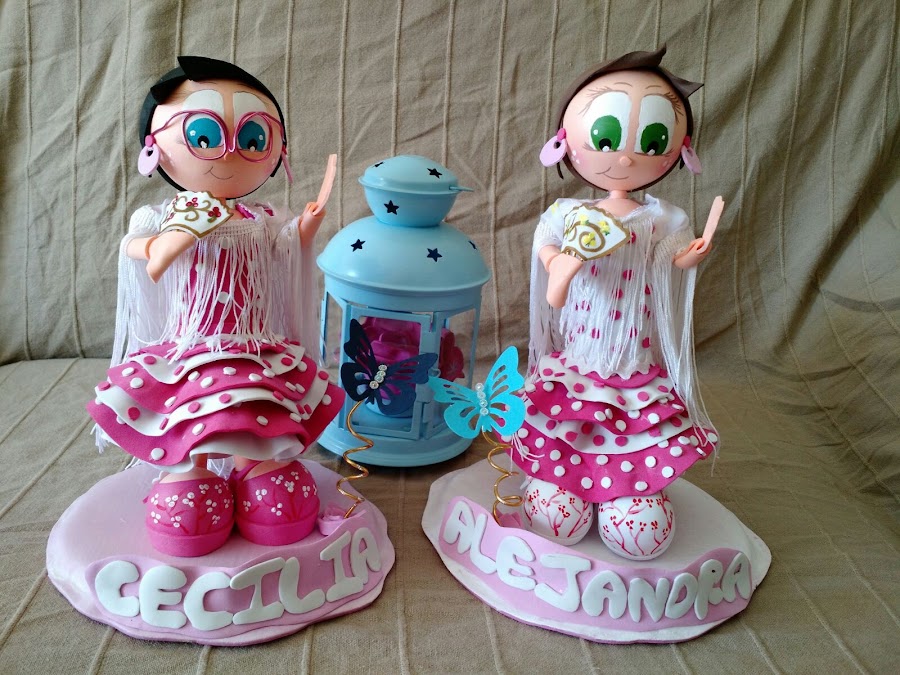 Hoy os traigo un proyecto para dos hermanas preciosas que nos realizó Encarna (su madre). Intentamos combinar los colores para que no quedaran iguales pero si que se complementara, espero que os guste.