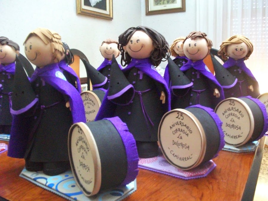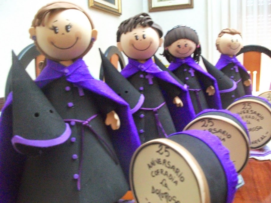 Estos cofrades son para el 25 aniversario de la Cofradía la Dolorosa de Caminreal, con ellos han obsequiado a las cofradías invitadas, gracias por haber contado conmigo para realizarlos, me ha hecho mucha ilusión, sobre todo el pregonero Luis uno de los cofrades fundadores y vecino mio.