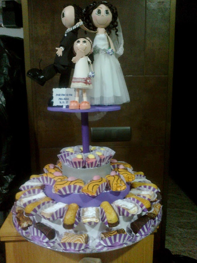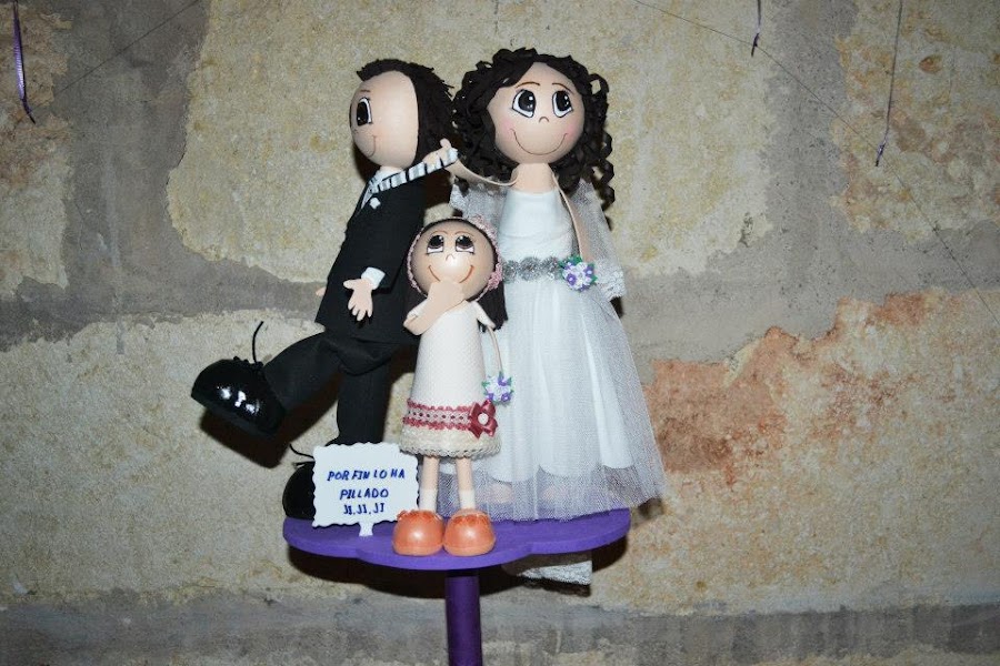 hola despues de un tiempo sin entrar he terminado otro trabajo en este caso unos novios a los que le añadi la dama de honor que en este caso era su hija eso fue sorpresa pues los novios no lo esperaban .
