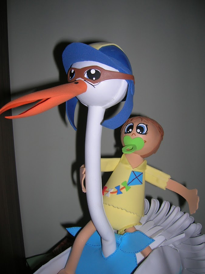 una fofucigüeña para una tarta de pañales