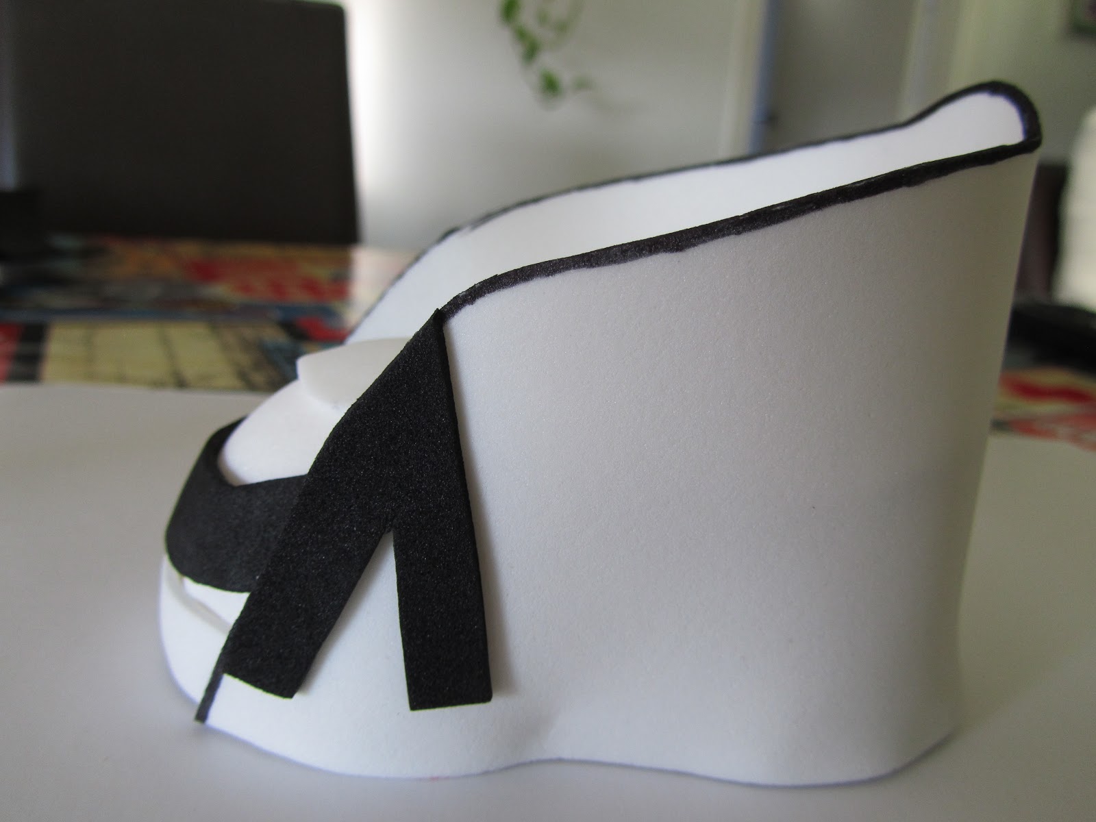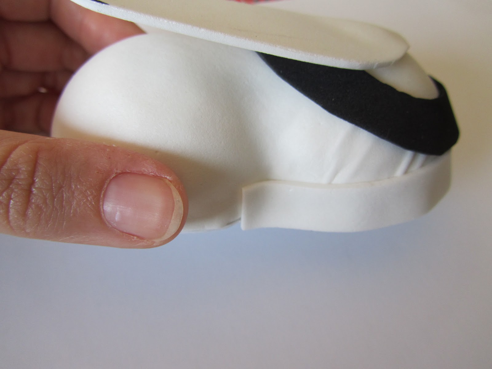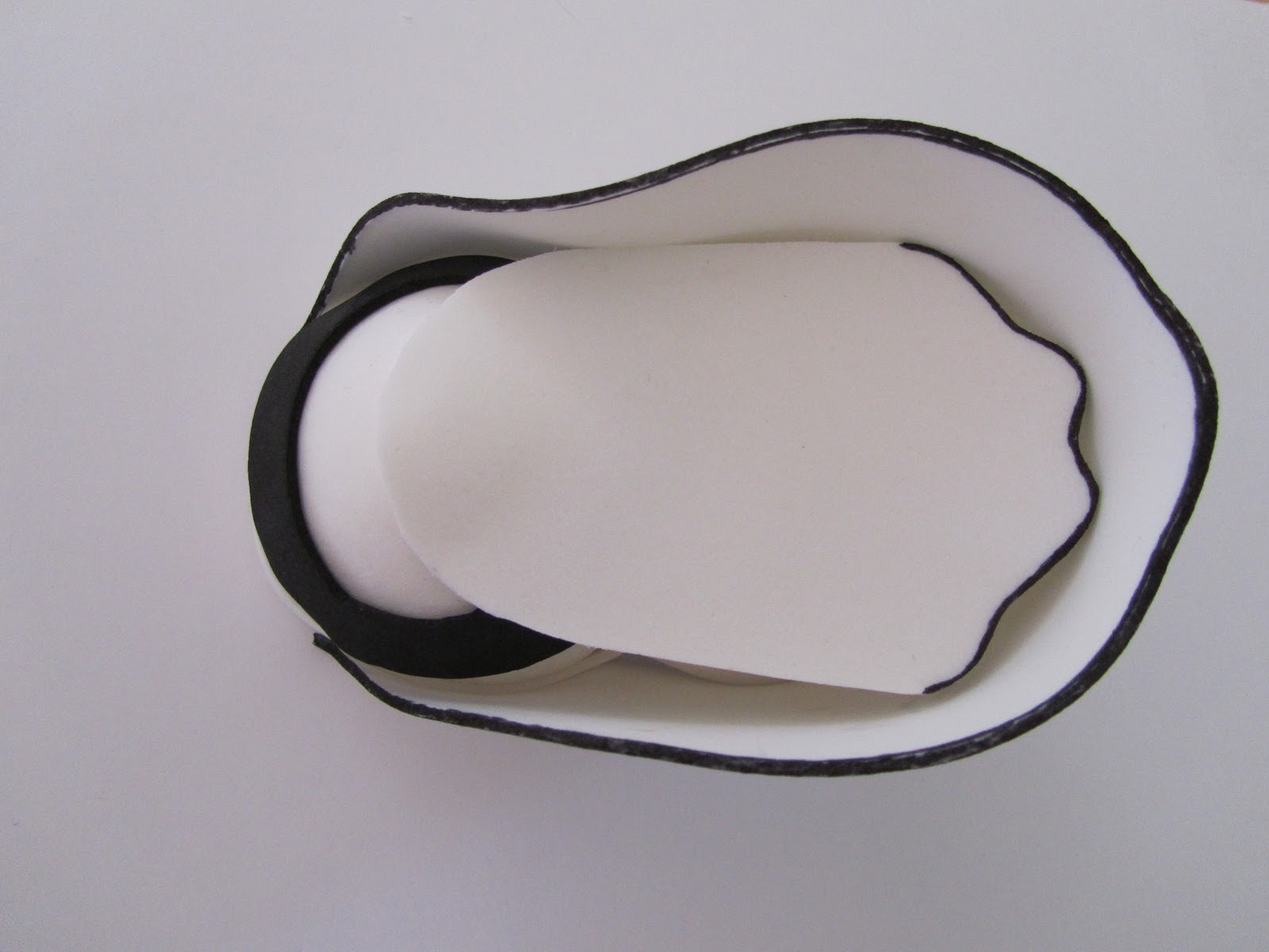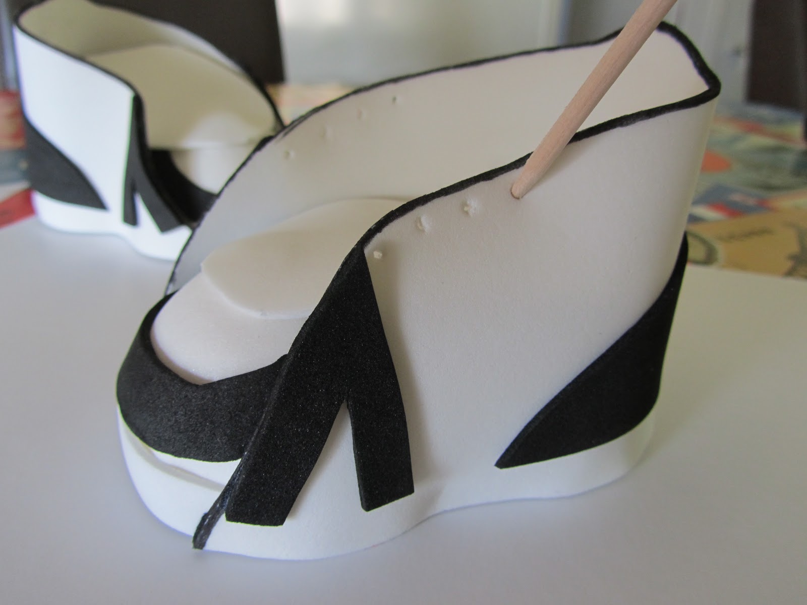 Recortamos un trozo blanco de foami que nos sirva de suela y enganchamos por los bordes.