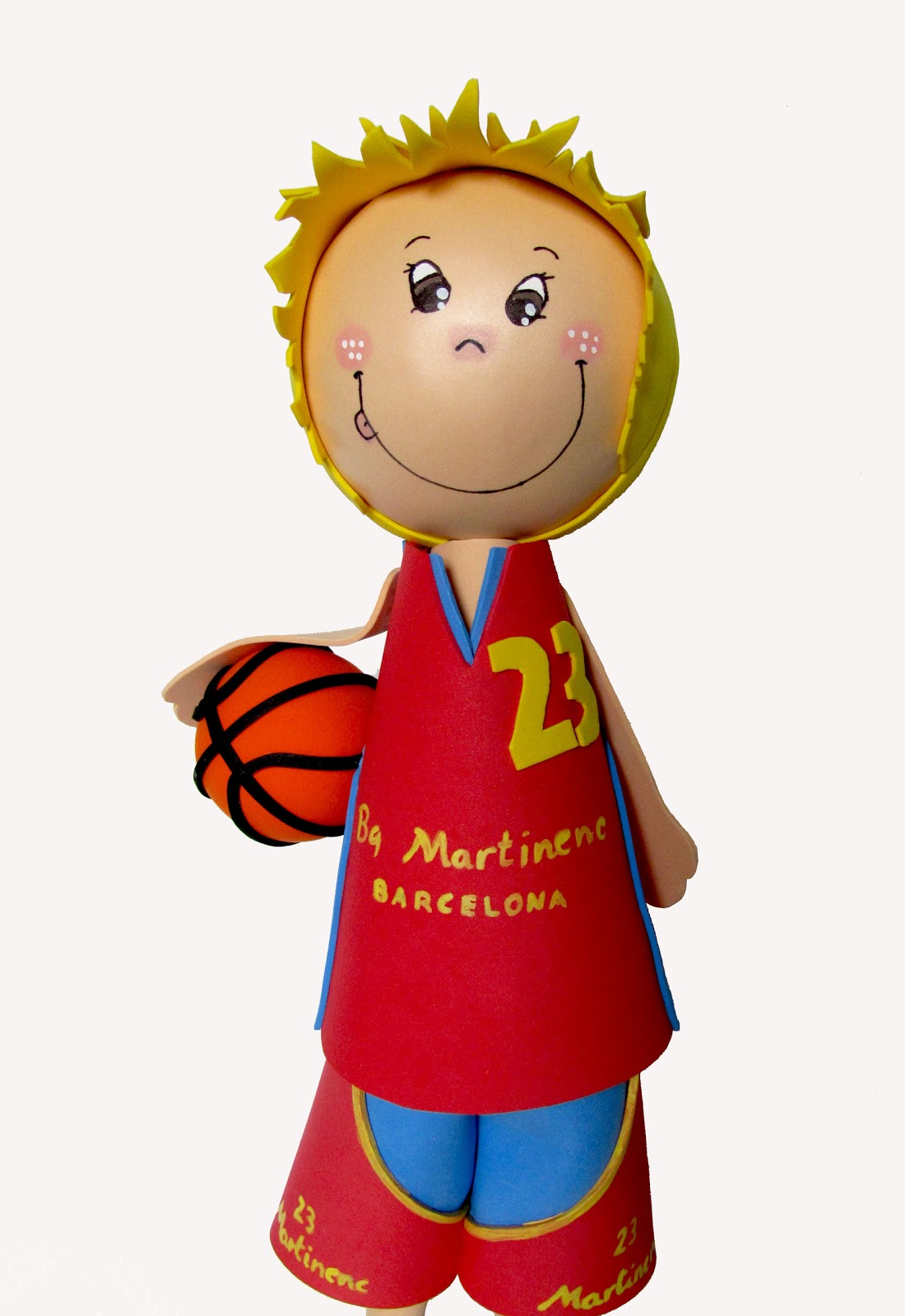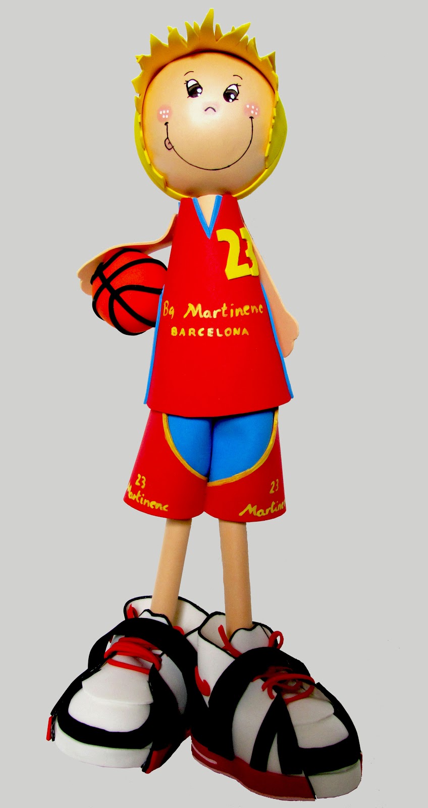Adrià es mi sobrino, y este fofucho lo hice para él, bueno para su mami, jeje...aunque de momento lo guarda él. Ya habréis deducido que juega a baloncesto, así que intenté recrear su equipación y sus bambas (zapatillas de deporte). Quizás me he pasado un poco con el tamaño, pero os aseguro que así no hay tantos problemas para que luego el fofucho se aguante ;P Desde aquí le animo para que gane muchos partidos, y si no que al menos se lo pase bien que es lo importante. Aquí os dejo una explicación de cómo hice las "bambacas":
