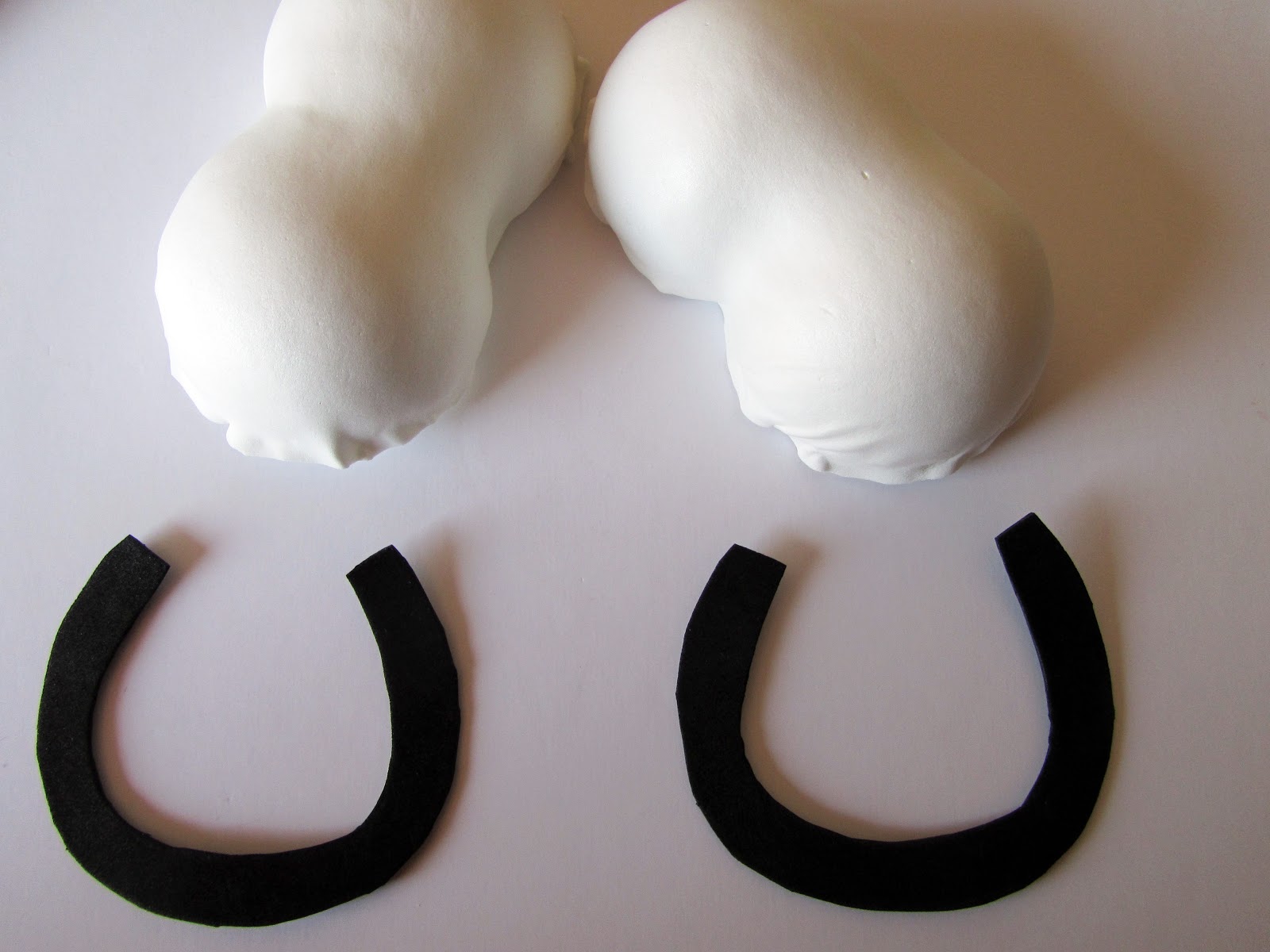 Luego recorté dos "herraduras" en negro y las enganché a lo que serían la parte delantera de las bambas.