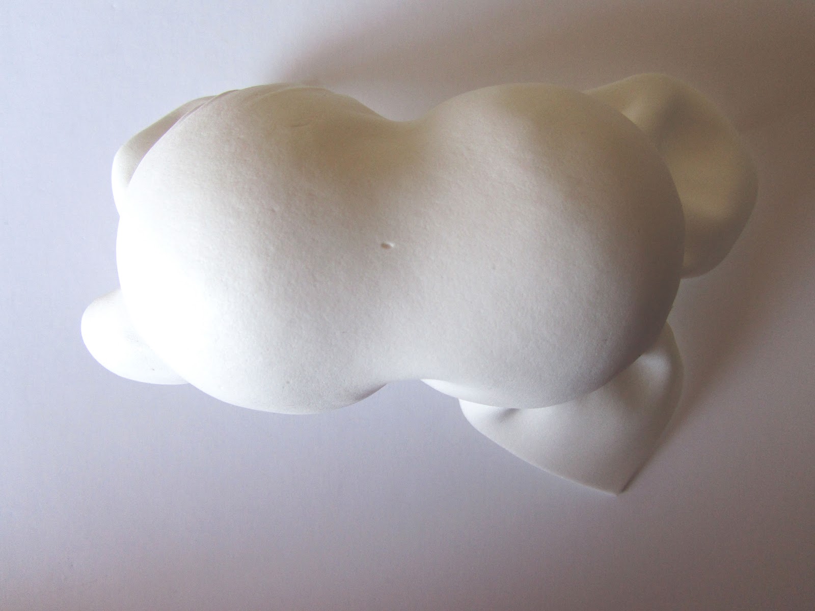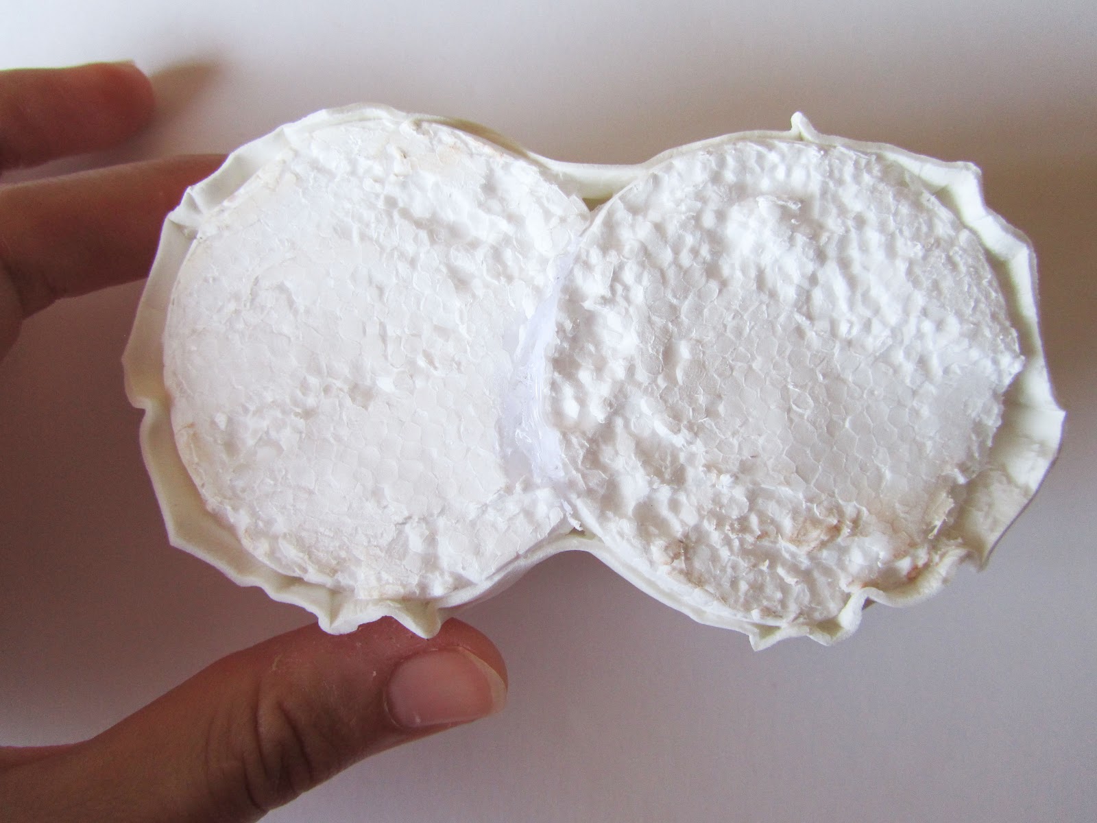 Utilicé dos bolas medianas de poliespán para cada zapatilla (en total 4), y las partí por un poco más de la mitad. Luego enganché cada parte, haciendo una hendidura en forma de media luna en una de ellas para que encajaran (en la foto de arriba se puede apreciar) Una vez hecho esto tenemos ya la base de lo que van a ser las bambas. Ahora toca forrarlas con el foami termoformado. Como siempre, lo engancháis por los bordes y recortáis el sobrante.