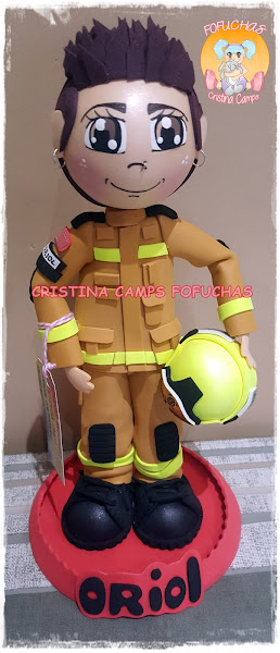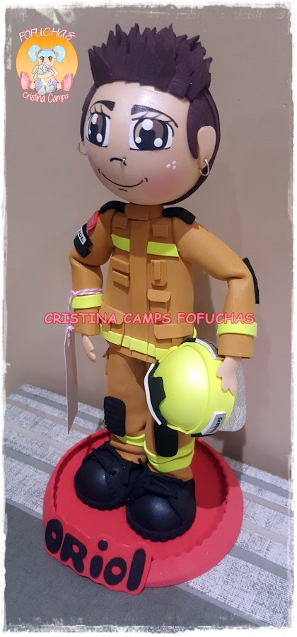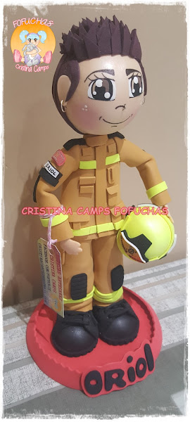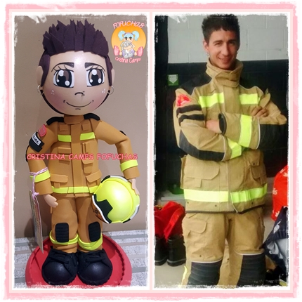 Aquí os dejo un simpático fofubombero, de unos 30cm aprox. Está totalmente personalizado, ya está con su dueño Oriol y me han contado que está encantado. Me han pasado una foto chulísima de Oriol con su miniyo, que también os dejo. Feliz fin de semana y mucha fuerza para empezar la nueva semana.
