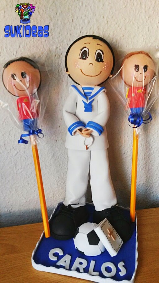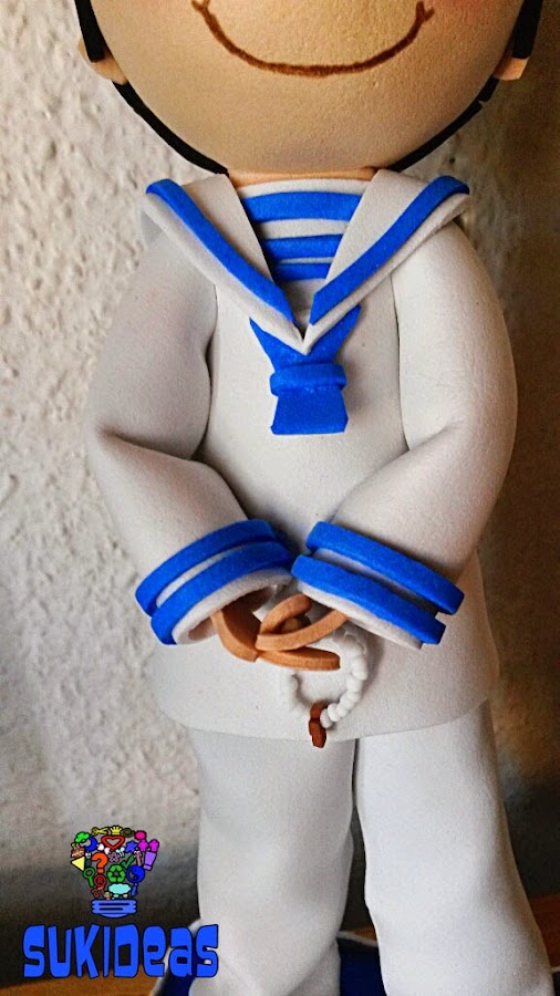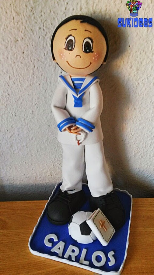 Carlos hizo su Primera Comunión y le regalaron un "MiniCarlos", vestido de marinero y posando para las fotos con su rosario entre las manos.