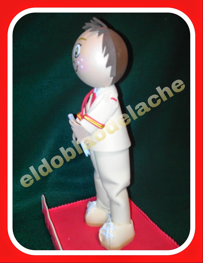 En tela color celeste con adornos en color negro y rojo. Una bonita combinación que se va para Tenerife.