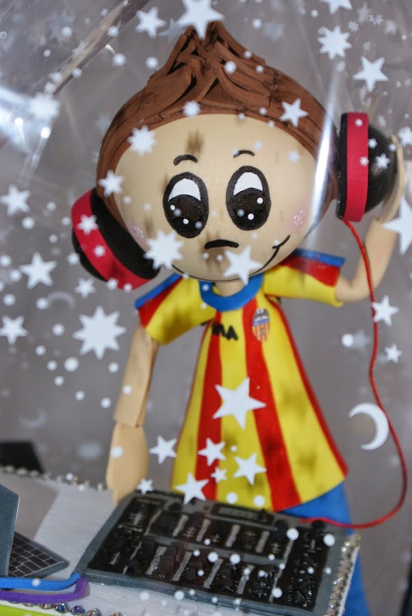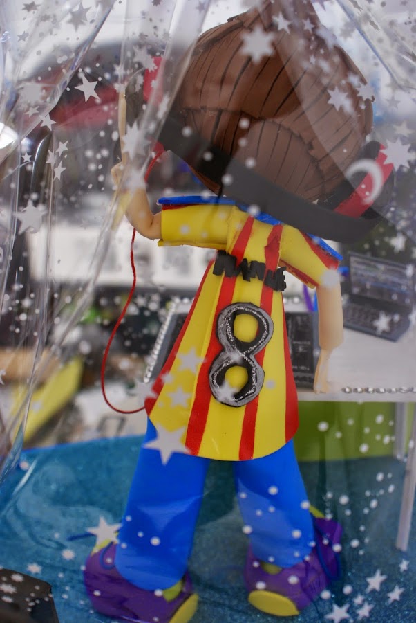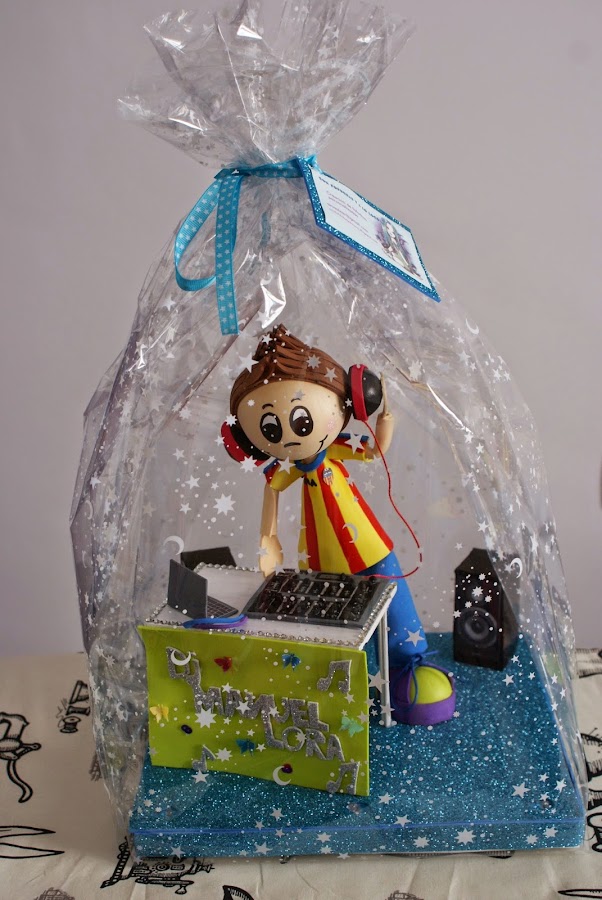 Hoy os traigo el fofucho de Santi que se fué para Madrid. Santi es un apasionado del pádel que nos pidió, como decoración para la celebración de su boda con Ana, una réplica suya vestido de jugador de pádel. Se ha intentado hacer con los máximos detalles posibles: marcas de la camiseta y bordados, detalles de las zapatillas, raqueta, muñequera… Si queréis ver la fofucha que hice para Ana, la ...