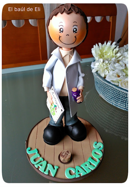Sobre la base está el nombre del protagonista. Son letras de goma eva que he pintado con acrílico blanco y matizadas con tizas color verde. Creo que ha dado un buen resultado :D