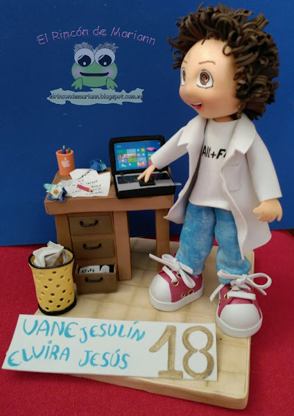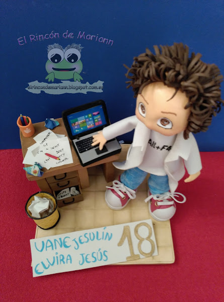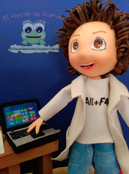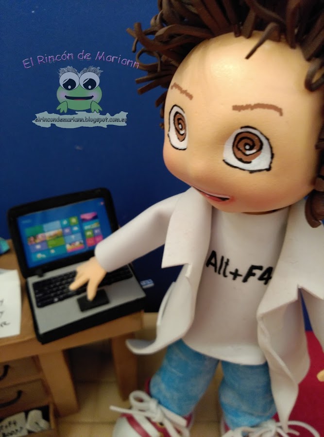 Hoy no os escapáis y no os vais a ir sin ver otro de mis muñequitos. Esta vez le toca el turno a un informático, fanático del sistema binario, vamos lo que viene siendo un loquito de la informática. Y así quisieron que lo personalizara, pelos revueltos (aunque no mucho que mis muñequitos tienen mucha clase ... ;) ...ojos de espiral y, bueno, todo tipo de detalles, yo creo que no quedó mal del todo.