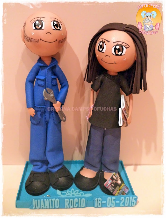 Y siguiendo con las parejas invitadas a la boda de Mónica y José os dejo a una pareja nueva. Juanito y Rocío, él con su traje de mecánico y ella con las revistas de sálvame.