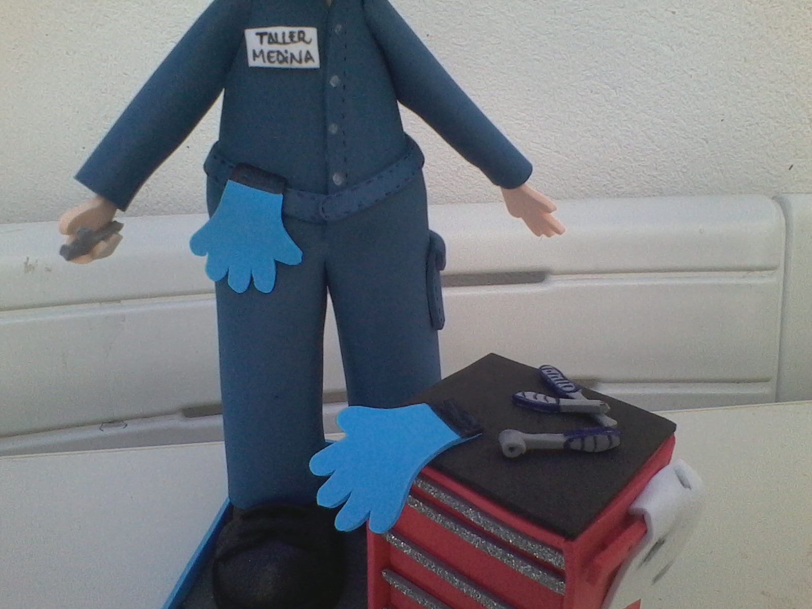 Arancha y jesús se casaron ayer, ¡Muchas felicidades!. Obsequiaron a sus familiares más cercanos con unas fofuchas que os iré mostrando poco a poco. ¿Que os parece este mecanico de coches?, tiene un monton de trabajo y de pequeños detalles.. estoy feliz con el resultado y Arancha y Jesús estan muy contentos ..que al final es lo más importante de este trabajo.