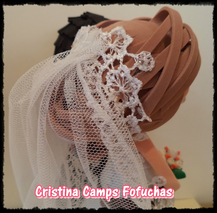 Hoy os presento a Cristina y su chico, se casaron el Domingo pasado.. ¡Muchas felicidades!!. El iba vestido de tuno y ella guapísima, me encargaron dos parejas de fofuchos para los padres de los novios. Estas muñecas tienen un monton de detalles, a ver que os parecen. Medidas: 25cm