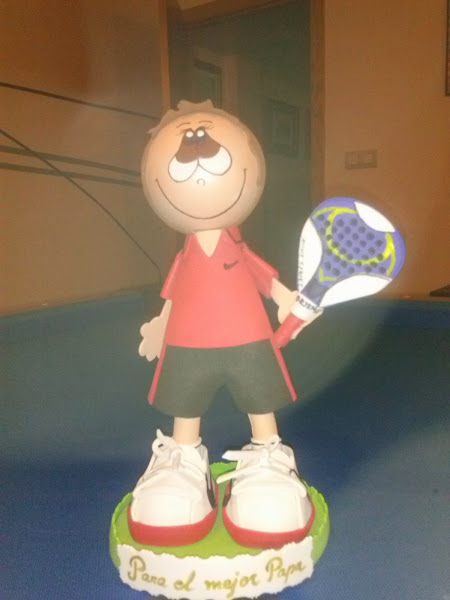 Holaaaa Comenzamos la semana con mucho frio pero con muchas ganas de nuevos trabajos. Hoy le toca el turno a un nuevo amiguito, un fofucho para un profesor de padel, regalo por el día de su cumpleaños. Con sus zapatillas Asics, su chándal, su raqueta y dispuesto a empezar la clase, está totalmente personalizado. El tamaño es de unos 20 cm. Un saludo a todos!!