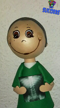 Gil, es profesor de primaria. sus alumnos le han regalado un fofucho con su mesa del cole, le hemos puesto la camara de fotos que le gusta tanto y en la pizarra estan todas las firmas de sus alumnos. Fijaros bien porque esta llena de detalles.