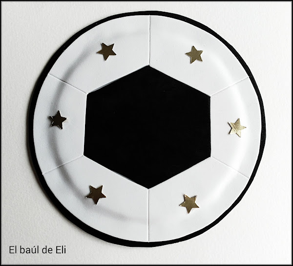 Comienzo con la base...redonda, decorada con unas estrellas doradas y con una pieza central en goma eva negra de forma hexagonal