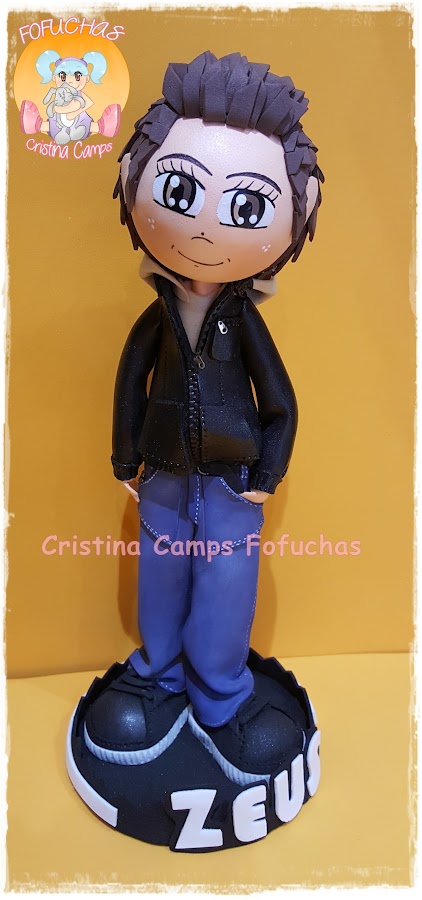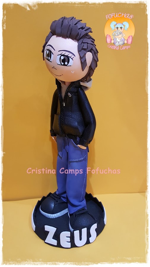 Este es Zeus, lo he vestido con tejanos y cazadora de cuero, y me pidieron que tuviera un poco de pinta de chulillo. Espero que os guste.