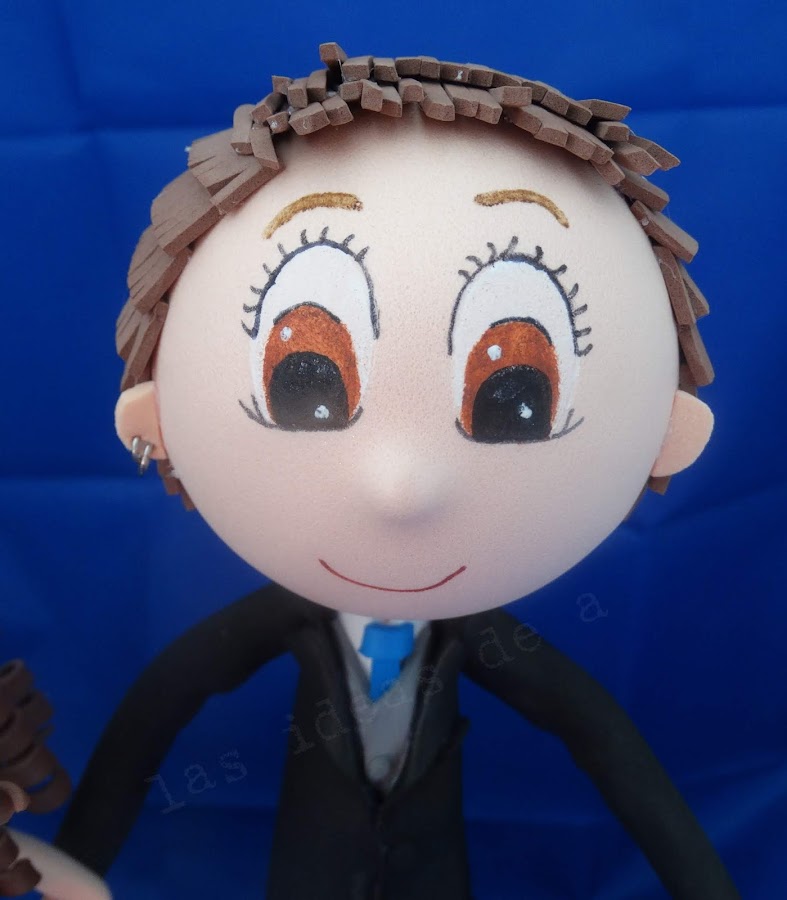 Para empezar tengo que destacar el pelazo de ella, tuve que rizar pelo a pelo y como veis tiene mucha cantidad, así que casi una tarde entera se me fue sólo en esto.