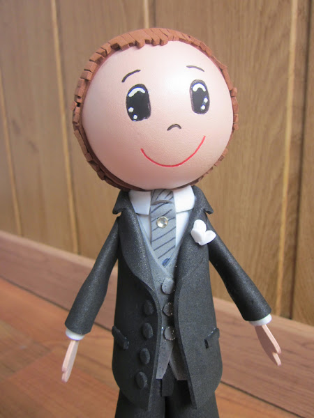 EL NOVIO, COMO YA SE SABE, SIEMPRE TIENE MENOS FOTOS... PERO NO LE FALTA NI SU ALFILER DE CORBATA NI SU FLOR EN LA SOLAPA.