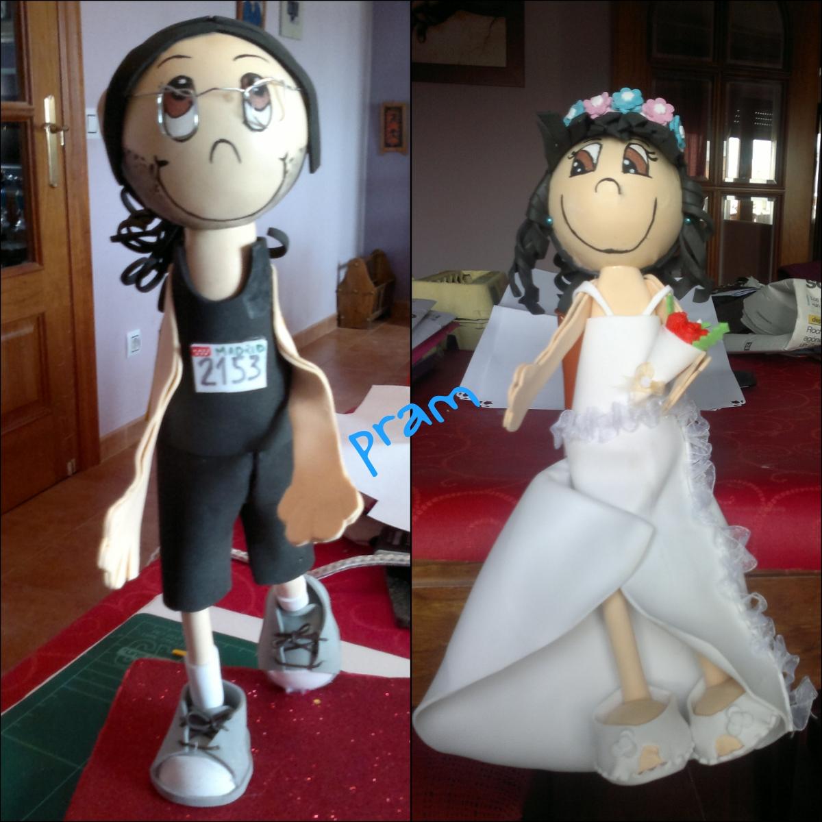 Cuando supe que a él le gustaba correr, se me ocurrió una idea: lo vestiría de atleta y llevaría a la novia en brazos, como si llegaran tarde. De ella intenté averiguar como iba a ser el vestido y el peinado que iba a llevar en la boda.