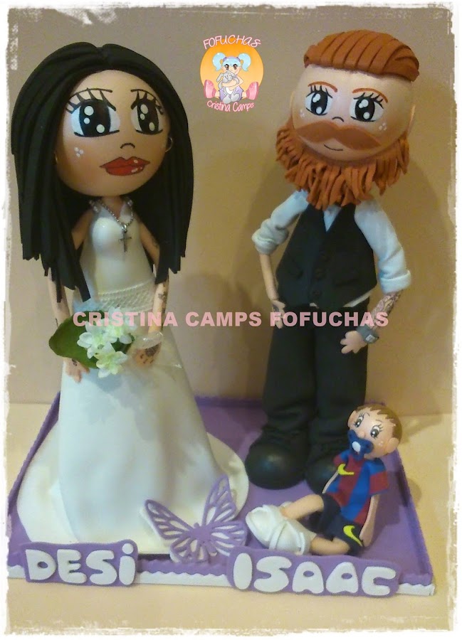De nuevo os dejo unos novios, ella lleva los labios muy rojos como me pidieron. Les acompaña su nene que tenia que llevar una camiseta del barça