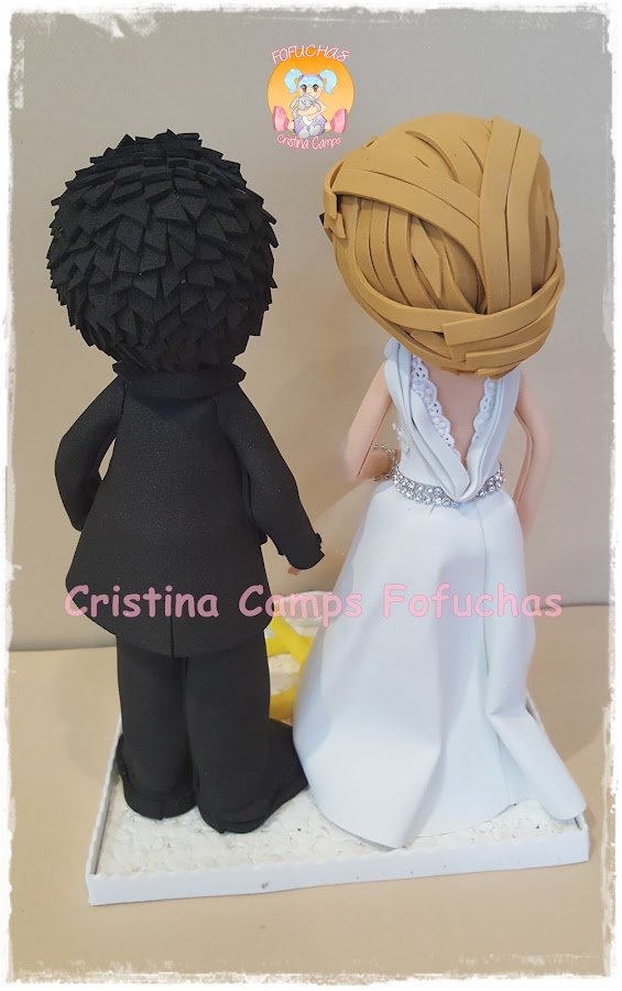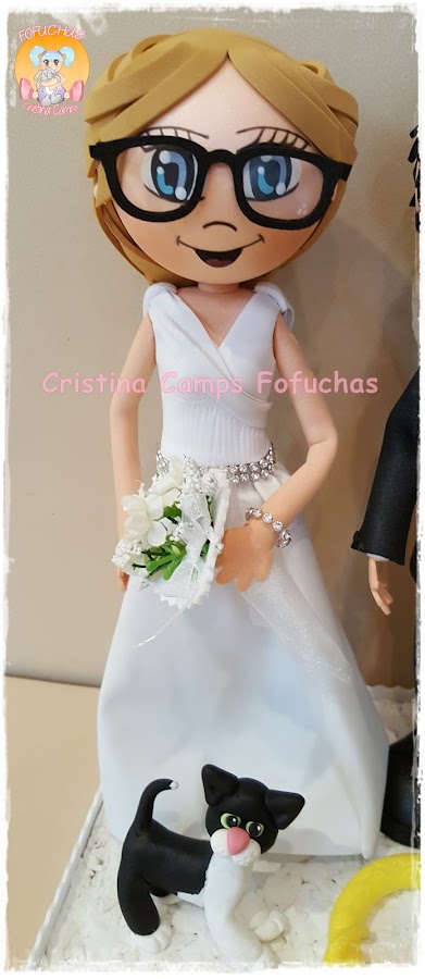 Seguimos con las parejitas de novios, esta semana tengo un montón para enseñaros.Estos van acompañados de su gatito y su serpiente. La novia lleva un vestido de corte griego con una espalda preciosa.