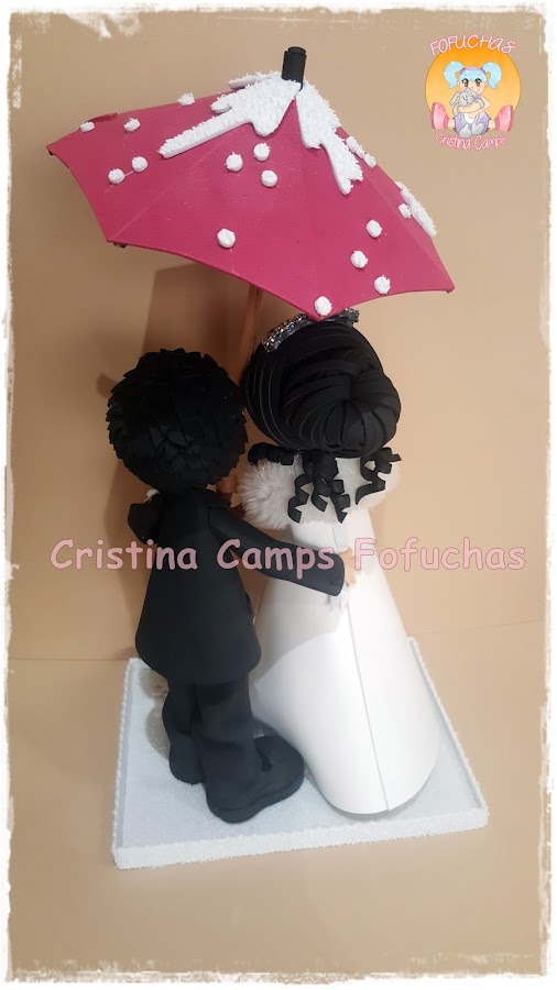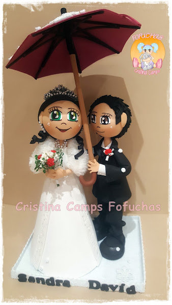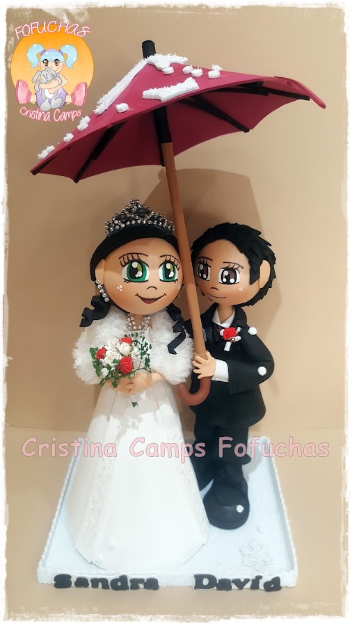 Muy buenas tardes a tod@s, seguimos con las parejas de novios, estos se casaron con mucho frío y nieve. Personalizados totalmente, van bien abrigaditos y con paraguas. La novia lleva un montón de complementos si os fijáis bien. Os agradezco que lo compartáis y ayudéis a que crezca mi página.