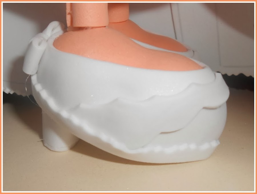 Con los zapatos de la novia, me salio bastante bien el tacón, pero la textura con la Sizzix no me convenció.