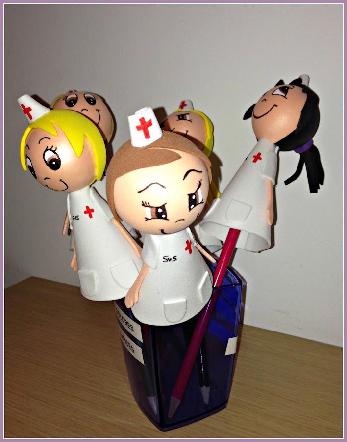 En Internet hay muchos tutoriales para todo tipo de Fofuchas. Después es cosa de aplicar la imaginación y divertirse pintándolas. Están pintadas con rotuladores permanentes, y lo que llevan en las mejillas es colorete de verdad.