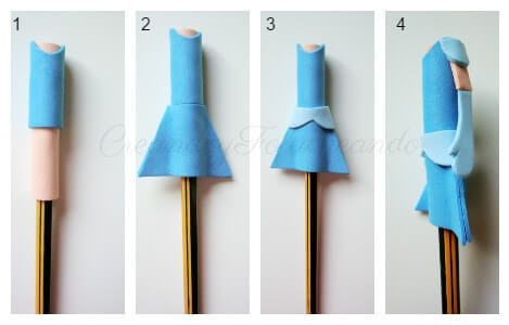 La verdad que Cenicienta lleva pocos colores,sólo 3,como ya hemos visto en la lista de arriba,así que como vas a ir viendo,no es un Fofulápiz muy trabajoso,y en una tarde lo puedes tener listo. ¿Te animas?