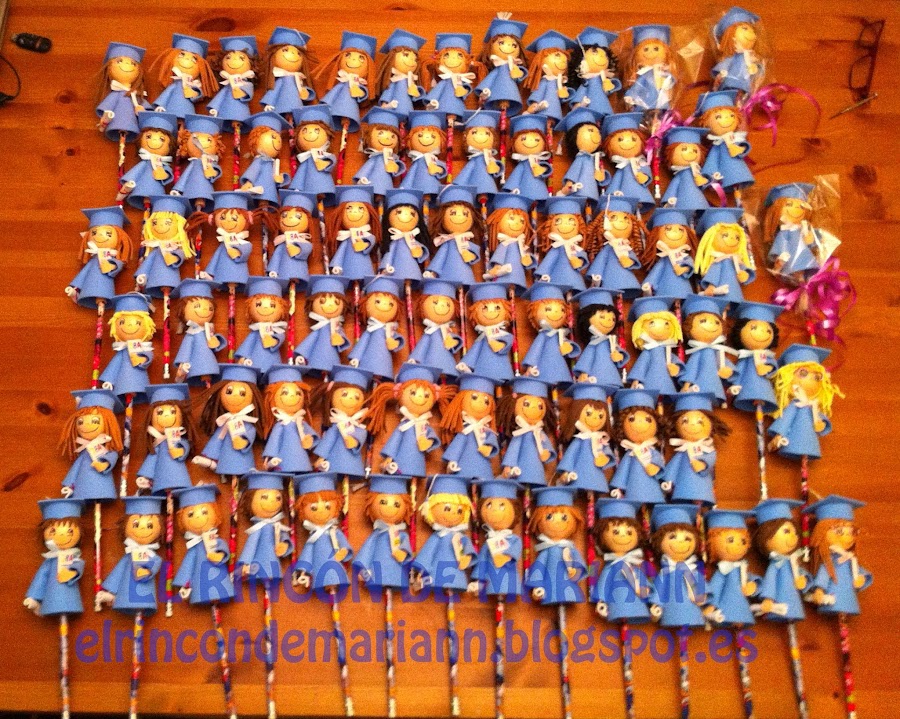 Hola, después de un tiempo desaparecida he vuelto. He estado este tiempo haciendo unos fofulápices de graduados ... 75 o sea casi nada !! jaja