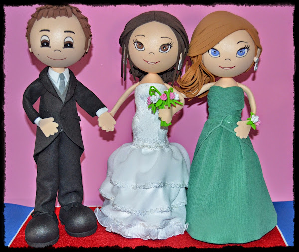 Hoy, el pedido completo, los fofunovios y la fofuprima, a la cual estos bonitos novios querían sorprender en el día de su boda!!! Esperamos que lo hayan logrado !! Esta tarde,volvemos con mas detalles y una pareja de minifofuchas, de 19 cm. que han completado el encargo de esta preciosa pareja!!!