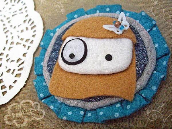 Como siempre un broche original y único, con unos colores básicos fantásticos para combinar con cualquier conjunto. Aquí podéis ver a esta foltys rubia en su packaging-stand, decidida a dar un toque de color a cualquier rincón.
