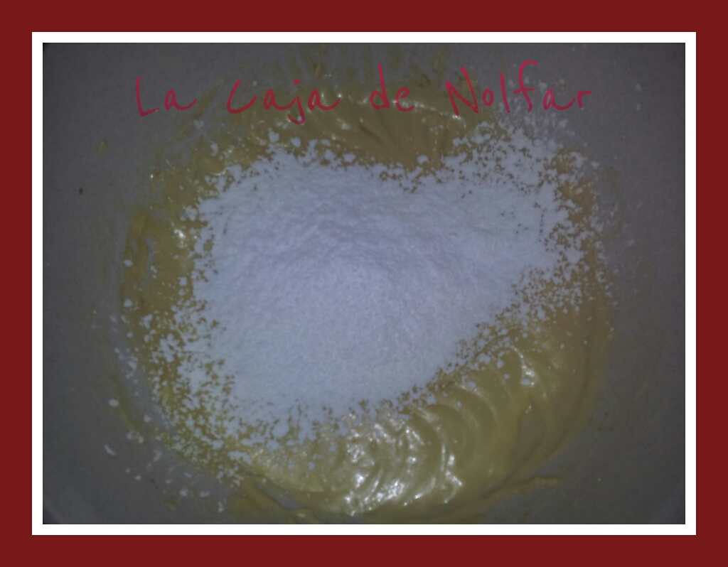 Una vez integrado lo anterior, se añade poco a poco el azúcar glass (mezclado con la Goma Traganto si vas a echarle, cosa que yo recomiendo) y se mezcla hasta que quede bien integrado