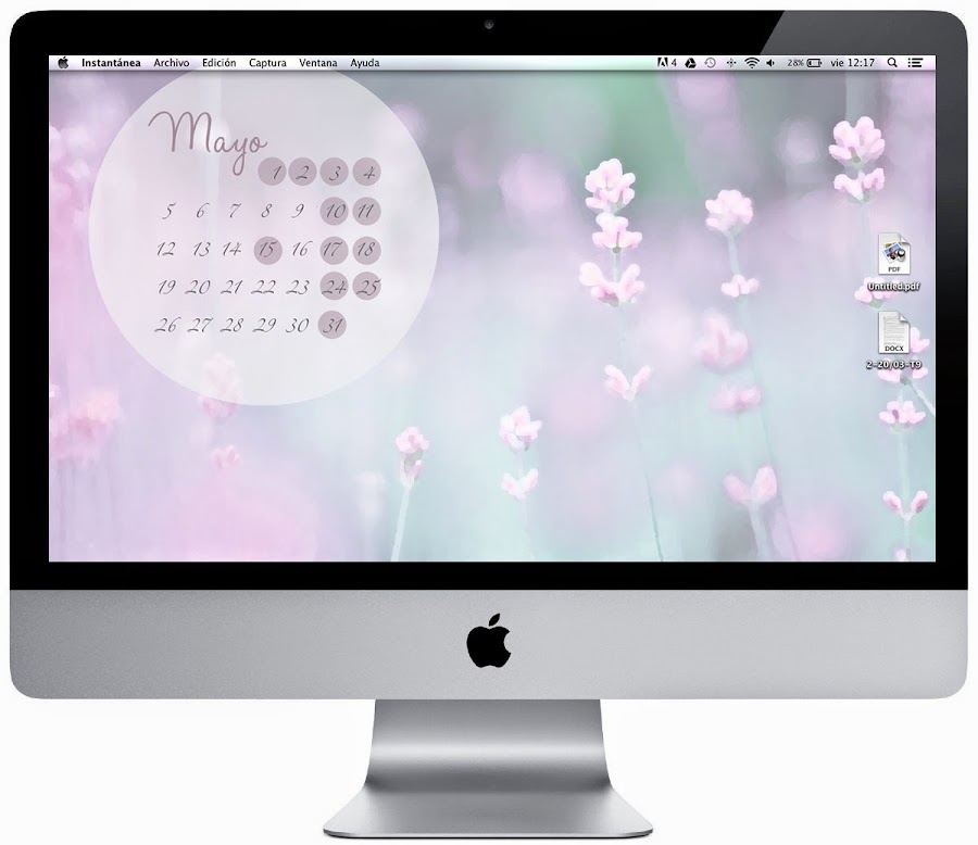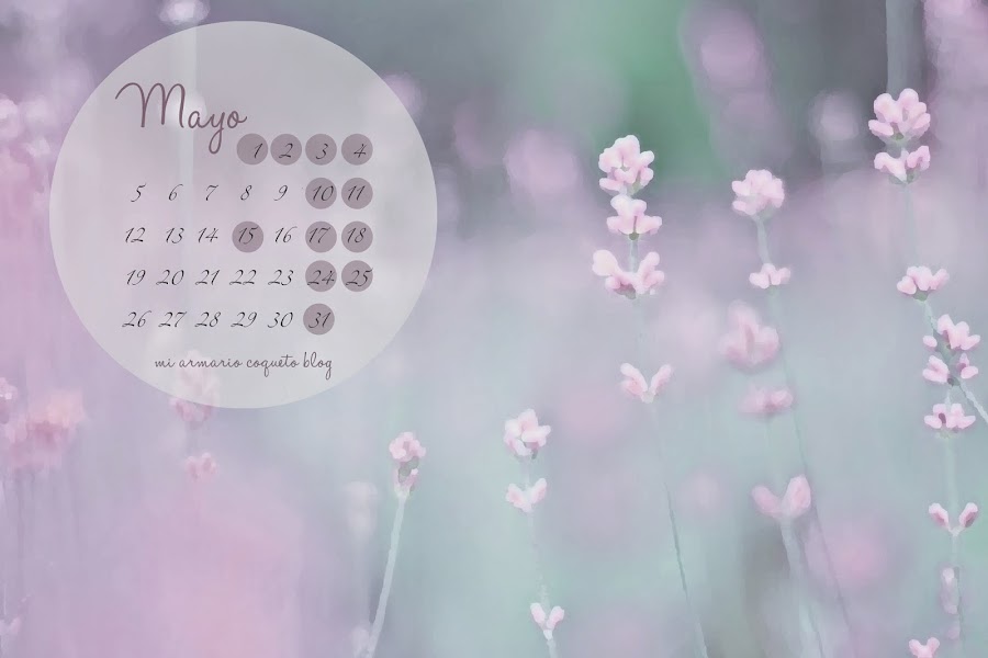 ya hemos entrado en mayo, ese mes tan floreado y que a todas nos gusta tanto a pesar de las molestas alergias. Por eso hoy traigo un fondo de pantalla inspirado en estos motivos florales. Se trata de un campo de lavanda y, como siempre, he añadido el mes para estar siempre al día. La "novedad", por decirlo de alguna forma, en este caso es que he señalado los festivos con circulitos, porque la verdad que este mes tiene bastantes.