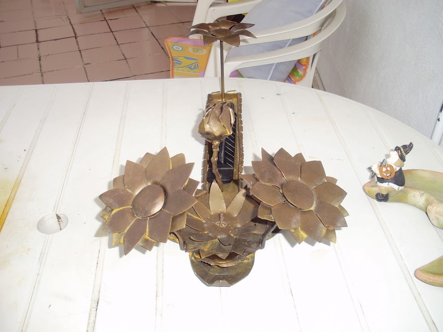 Nadie creerá que esta bella decoración de pared está hecha con un cable viejo y unas latas de aluminio, muy fácil y económica de hacer y lo mejor: con apariencia de un trabajo de forja o hierro, todo hecho con material reciclado... En si misma, la forma que le damos a los cables imitando la forja se ve muy bella, pero también agregamos esta bella flor al centro, hecha de manera muy fácil con lata ...