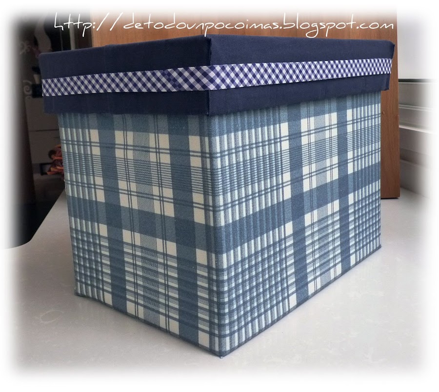 Cajas de cartón, de una vajilla, forradas con tela. No les he puesto mas adorno que una cinta porque van a llevar trote...