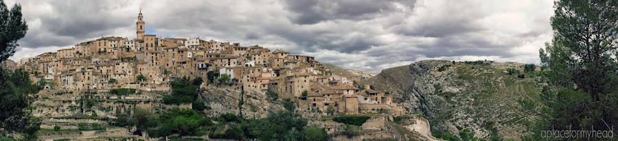 Ese mismo fin de semana fuimos a dar un paseo a Bocairent y allí hice un par de panorámicas del pueblo desde la carretera.