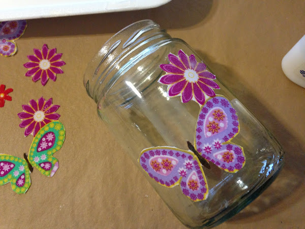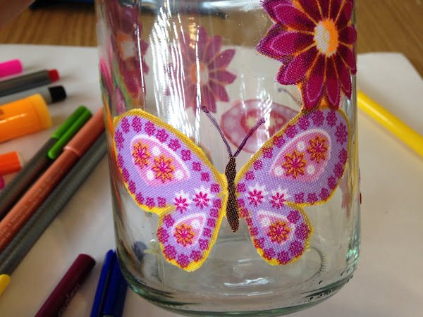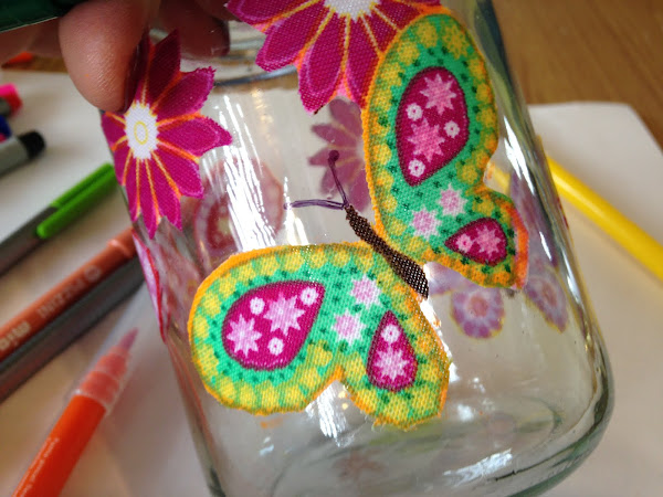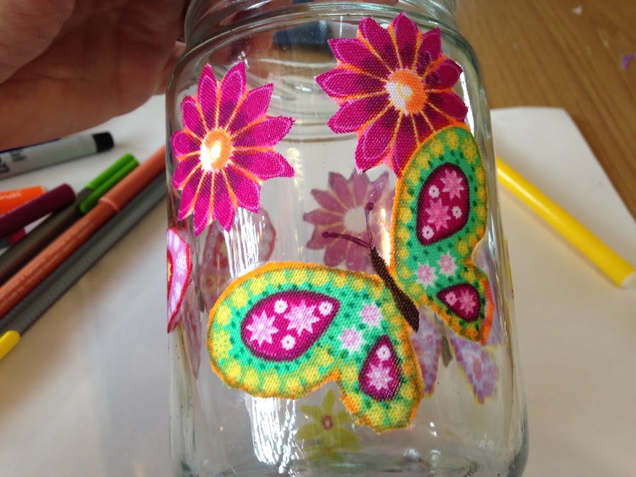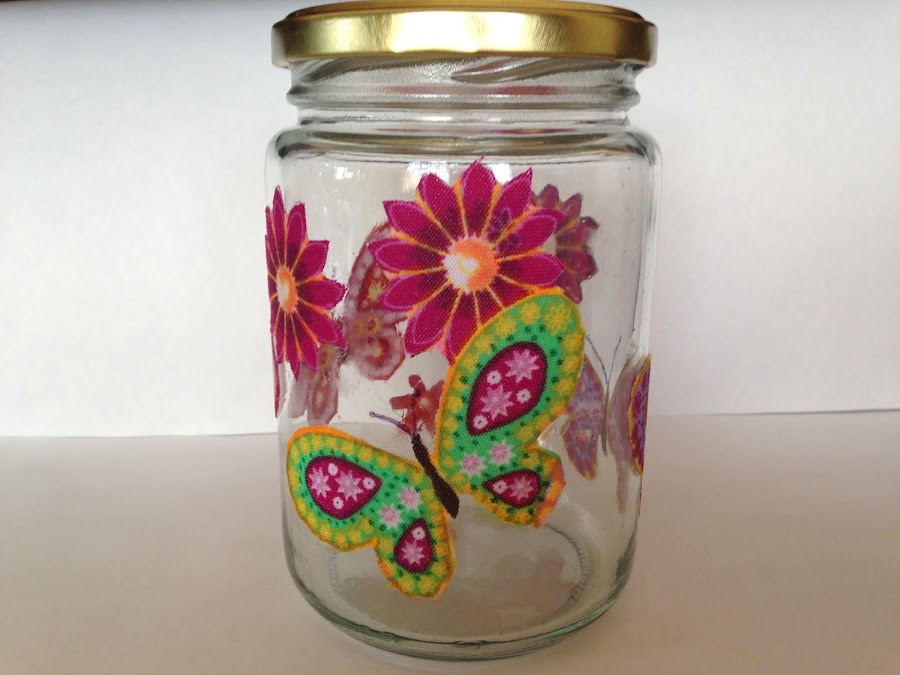 Esta vez, me decidí a probar algo nuevo, decoupage pero con tela ¡ y sobre un frasco! tenía que trabajar eso porque además debe poder usarse, por lo tanto hay que poder lavarlo. Y si, logrado!!!!!!!
