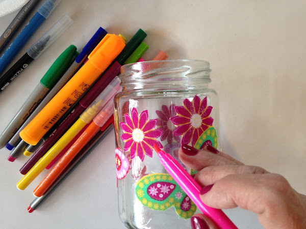Una vez que están bien secos, como se trata de tela no siempre quedan bien recortados, incluso si la tela es algo gruesa como en éste caso quedan bordes blancos. Para solucionar esto usé marcadores de colores, los que usan los chicos en el colegio y comencé a remarcar los bordes para que quede más prolijo.